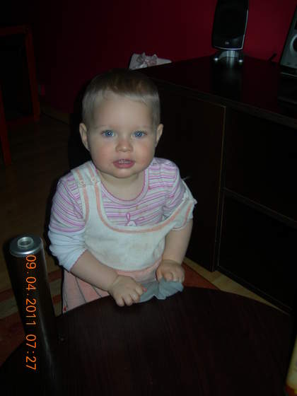 Znalazłam stare zdjęcie Asi z jej popisową miną;-) takie mniej więcej spojrzenie spod byka rzuca nam kilka razy dziennie;-)