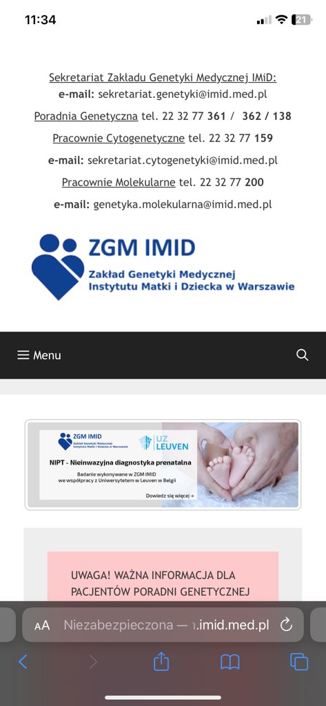 ja zadzwoniłam z zapytaniem jak się umówić i na stronie jest instrukcja, tam trzeba wysłać wszystkie dokumenty na maila i ja to zrobiłam, a 3 dni później miałam umówiona konsultacje telefoniczna na której został ustalony termin amniopunkcji. Link do: PILNA INFORMACJA DLA PACJENTEK W CIĄŻY - Zakład Genetyki Medycznej IMiD