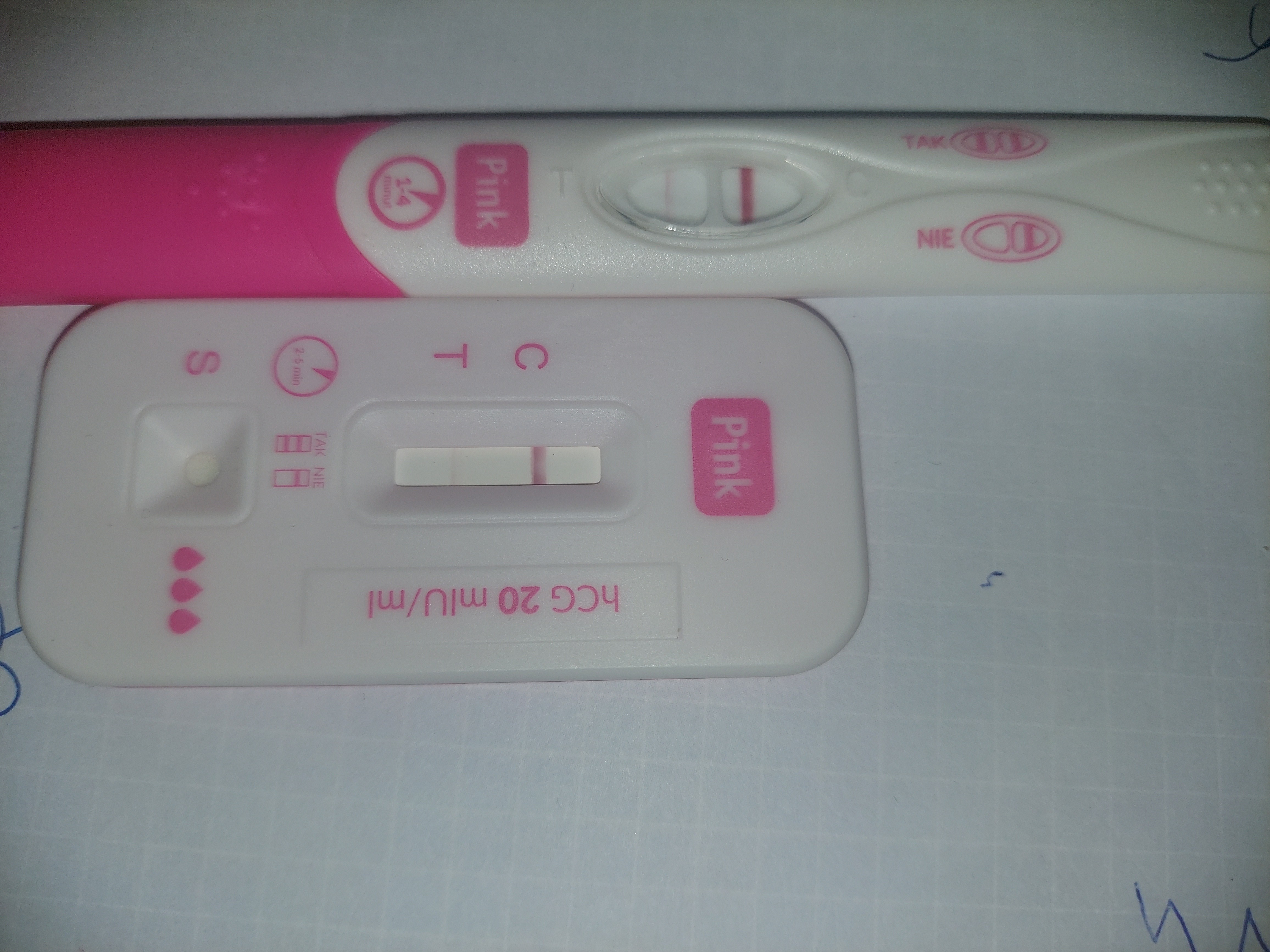 Witam was serdecznie. Dołączam zdjęcia moich testów ciążowych. Od dwóch miesięcy nie mam miesiączki, dwa dni temu miałam wydzielinę lekko zabarwioną na brąz, ale w kolejnym dniu już się to nie powtórzyło. Ginekolog miesiąc temu nie widział nic na usg. Więc postanowiłam wczoraj zrobić testy ciążowe które wyszły tak. Dodam że wszystkie badania ginekologiczne wyszły bardzo dobrze wraz z cytologią. Te z rana mają bardziej widoczną kreskę dwa pozostałe zostały wykonane wieczorem oraz o trzeciej nad ranem. Mają bladsze kreski. Czy jest możliwość że jestem w ciąży? Nie mam ochoty na swoje ulubione potrawy oraz straciłam apetyt ( gdy kiedyś był ogromny) A nie wspomnę już o bólu piersi, bo jest nie do wytrzymania