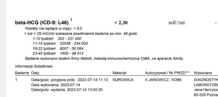 Czy ktoś jeszcze mógłby się wypowiedzieć? Bo się stresujeZobacz załącznik 1547377witam. Zrobilam beta hcg 31 dni po stosunku , 24 dni oraz 17 dni. Czy według tego już w pierwszym tygodniu ciąży moje beta powinno wynosi co najmniej 202, żeby była mowa o ciąży?