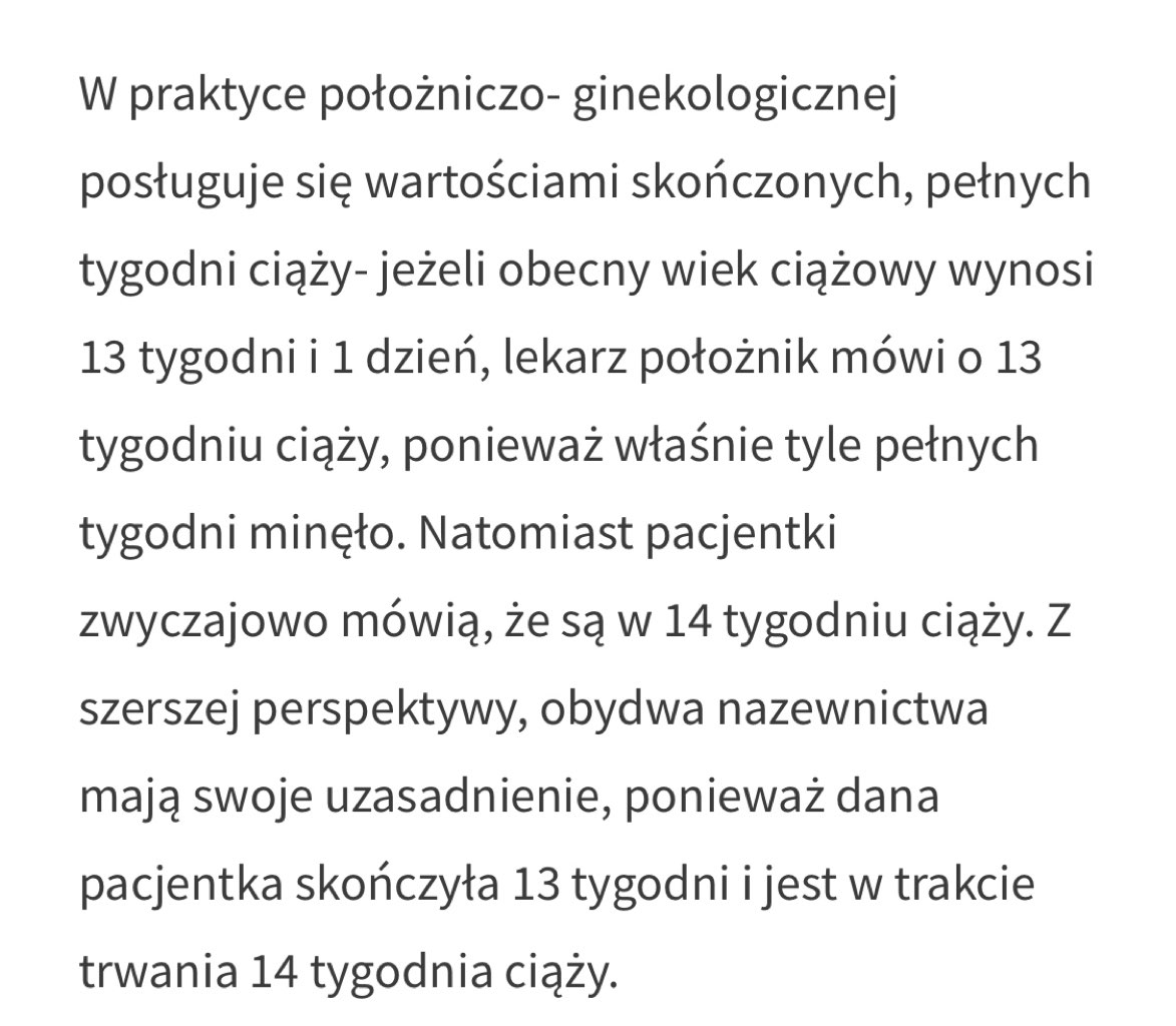 Ja zawsze mam wizyty w środy wypada mi np 17+4 a w karcie mi lekarz wpisuje 18Tu jest to fajnie wytłumaczone, dla lekarzy przykładowo 31+3 to 31 tydzień ciąży, nie 32.