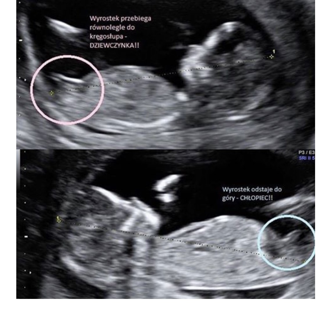 Muszę sprawdzić w dokumentach dokładnie, a te zostawiłam u teściówGdyby zdjęcie było z boczku zrobione to tak jak dziewczyny powyżej mówiły - wyrostek układa się przy chłopcu wzwyż, a przy dziewczynce bardziej rownolegle. Masz może inne zdjęcie?