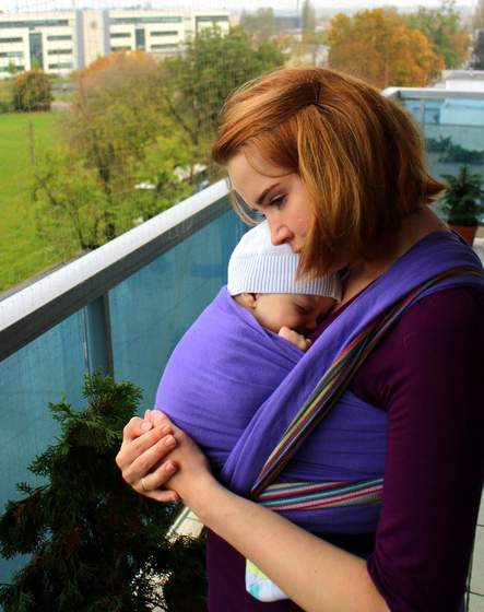 ja już w sumie dawno chusty nie uzywałam, bo jak pisałam, Zuzia lubi wózek i mi wygodnie na spacer czy zakupy z wózkiem, ale dziś padało i stwierdziłam, że iść po Olę wózkiem = nanieść błota na świeżo umytą podłogę, tak więc wyciągnęłam chustę. Zuzia na szczęście nie zapomniała, że to fajne jest i jedynie awantura była, jak usiadłam Oli buty pomóc zmienić