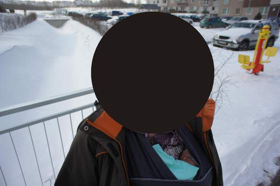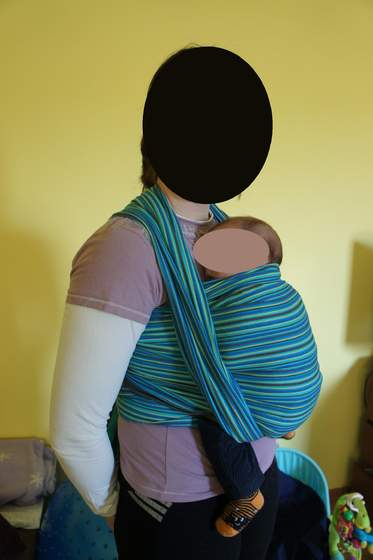 tu w 11 tygodniu zmieniliśmy chustę na chustę tkaną Natibaby - pierwsze przymiarki