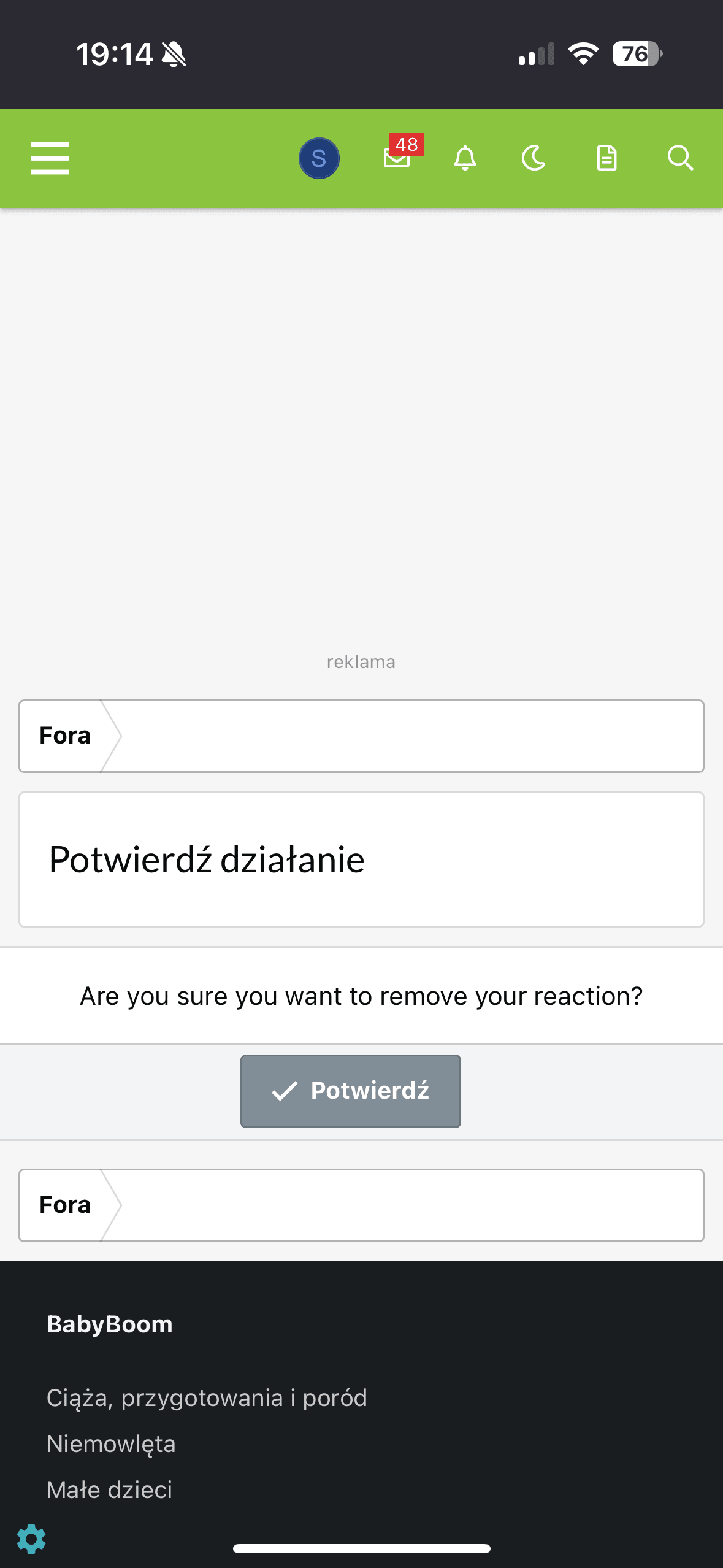 U mnie dokładnie to samo. Taki spam reklam i na całą stronę i nad klawiaturą, że szok. Do tego w trakcie pisania odpowiedzi zdarza się, że coś "samo" się kliknie i przenosi mnie do jakiejś innej strony z odpowiedzią. W trakcie przeglądania tematu, wyskoczyła mi też dzisiaj ni z gruchy ni z pietruchy podstrona z pytaniem "czy na pewno chcesz usunąć swoją reakcję?"U mnie to wygląda tak:Zobacz załącznik 1698769Zobacz załącznik 1698766