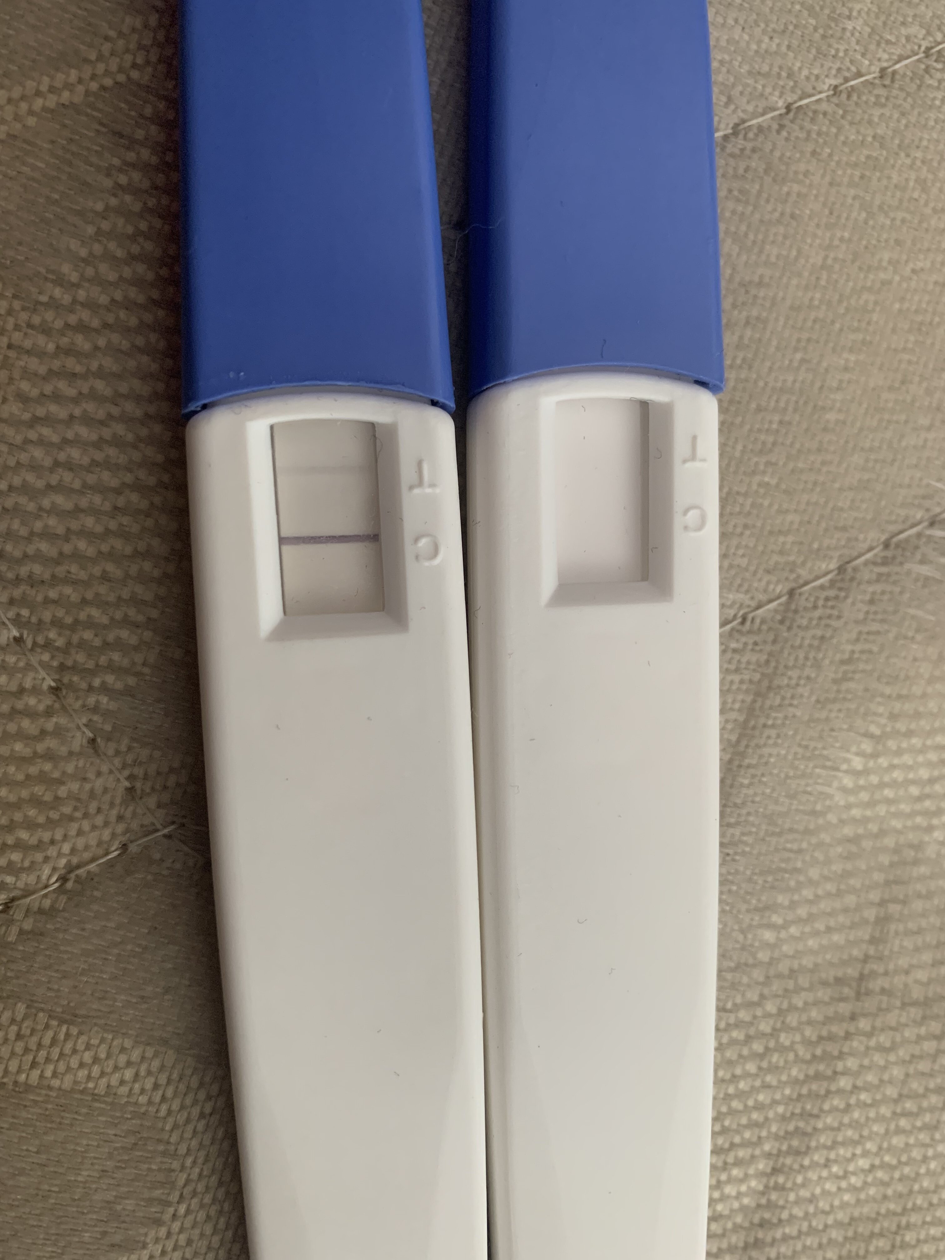 Zdjęcie testu fabrycznie nowego i mojego po wykonaniu. Dodam, ze gdy wcześniej używałam testu tej firmy druga kreska całkowicie nie była widoczna. Spotykałyście się kiedyś z taką sytuacją?