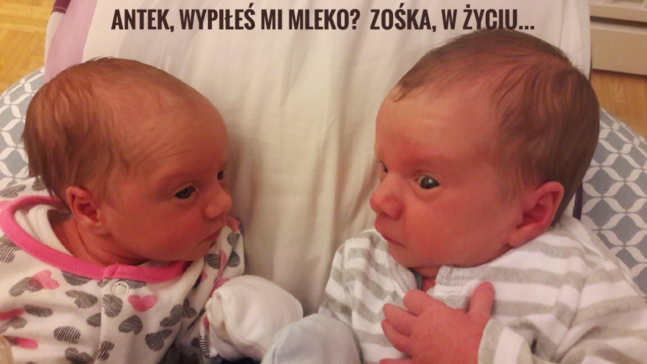 @Necia0 widzę, że mamy podobny problem.. ja generalnie min 6 razy na dobę nam randki z laktatorem, przy piersi Olek pociągnie kilka razy i zaczyna tylko mlaskać ciumkac więc muszę podawać mu butlę bo chociaż widzę ile zjadł, zwłaszcza że na początku były problemy z jego przybieraniem na wadze. Powalczyłam z Oliwka i czasem uda ja się przystawić, ale też kończy z butla..poza tym muszę je dokarmiać mm bo mojego mleka po prostu nie starcza na dwójkę- potrafią zjeść już po 120 ml, ostatnio padł rekord i było 150...i właśnie niestety laktator wszystkiego nie ściąga, bo jak maluchy jedzą mleko dosłownie tryska na każdą stronę.. a zdjęcie super, i uśmiałam się z podpisu męża - bardzo trafiony