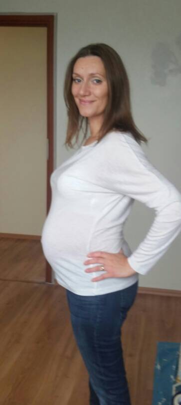 Szyjka twarda i zamknięta, młody rośnie na 50 centylu.