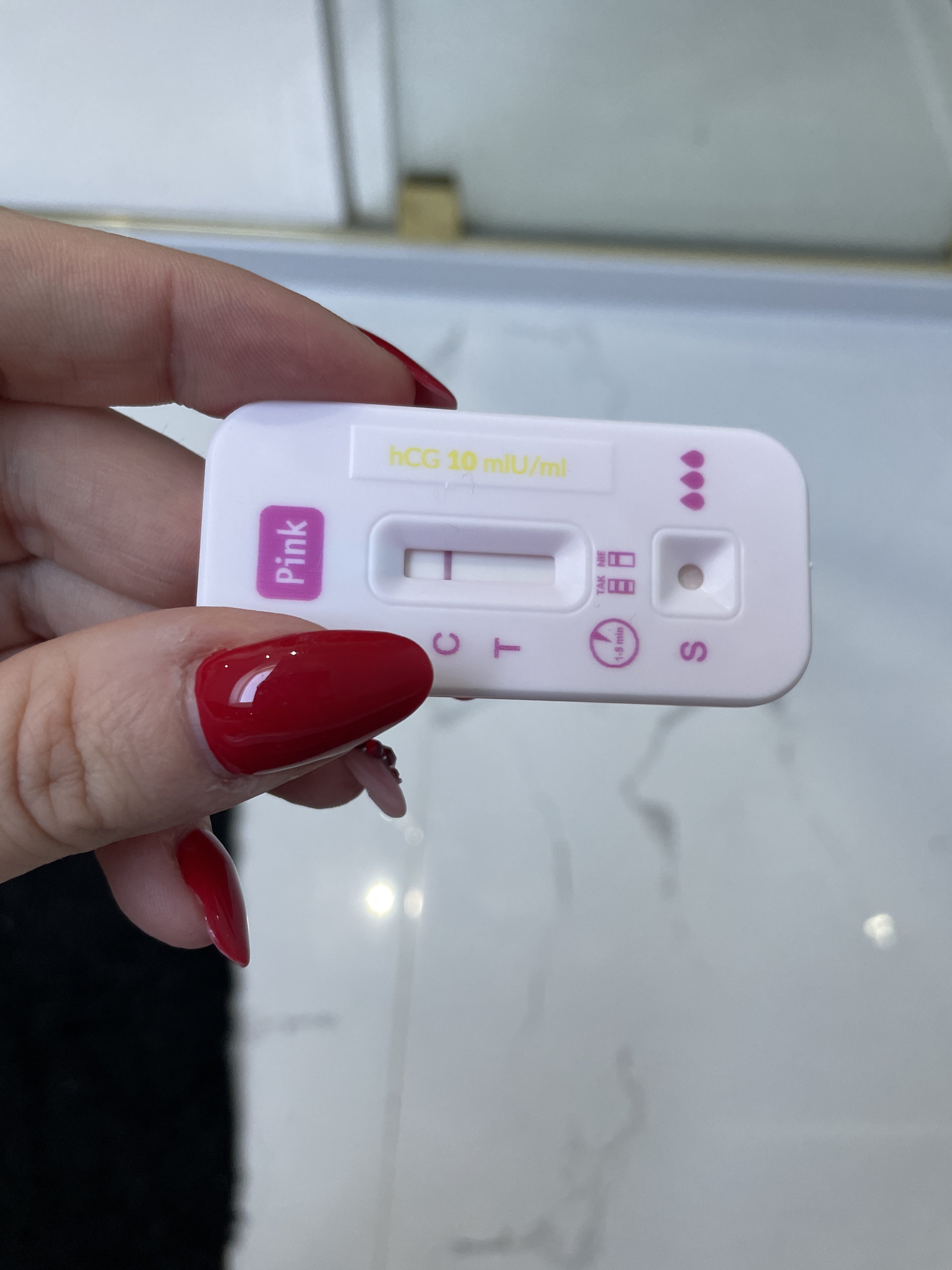 Ta druga kreska pojawił się od razu praktycznie. Pasek jeszcze cały nie zdążył nawet przelecieć a już była. Tutaj na zdj po około 5-8 min. Dziś rano zrobiłam o czułości 25 i negatywNegatywny i wydaje się zalany.![]()