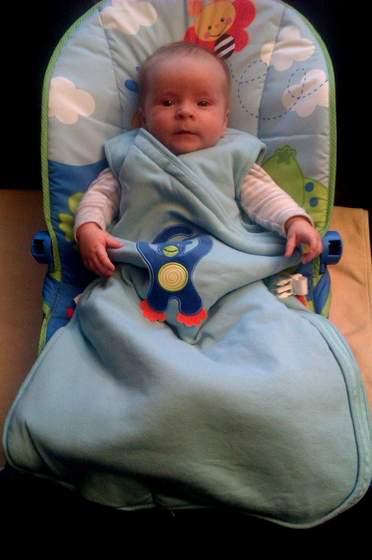 No i wyprobowalam od razu.Maluszek zasnal spokojnie i bylo mu cieplutko.Ale jak sie obudzil to ni ciula nie chcial w nim byc.Fika juz nogami,wiec pewnie mu przeszkadzal.