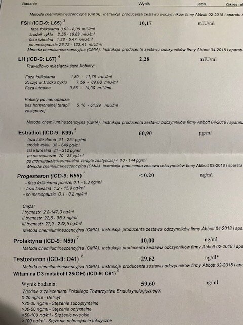 Wiem, że są tutaj dziewczyny ze sporym doświadczeniem, może się wypowiedzą? Może doradzą. Ginekolog dał nam czas do końca roku, ale zrobiłam już badania żeby w razie czego nie tracić czasu. Dziękuję za wszystkie porady. Oto moje wyniki: