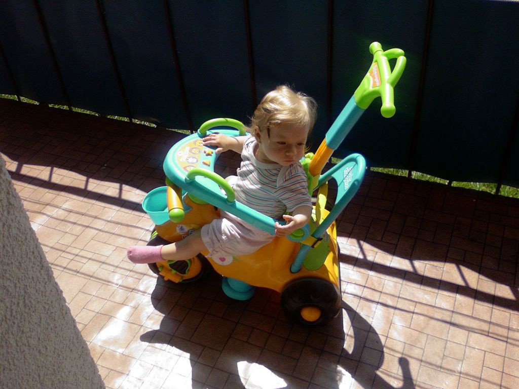 W końcu zdecydowaliśmy się na łóżeczko Baby Ono, z przewijakiem, którego raczej nie będziemy używać i z pałąkiem z zabawkami (zabawki oczywiście nie wiszą na pałąku tylko są maltretowane ;-)).Bez wibracji (bo po co niby takie coś??).Nadruków żadnych nie ma, tak jak u Nineczki dłuższe boki to siatka, jeden krótszy odpinany, a na drugim kieszonka na pierdółki.Oliwce się podoba