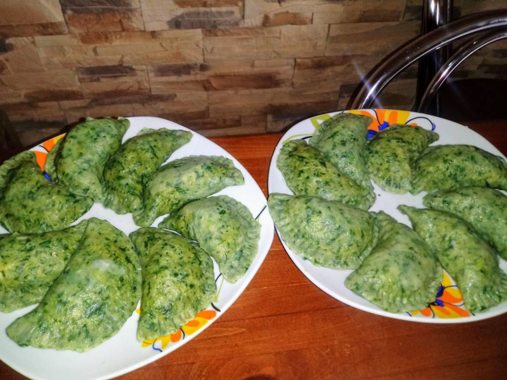 Ruskie poczyniłam... Niewdzięczne z mrozonego szpinaku, jednak co świeży to świeży. No skuszę się na jednego