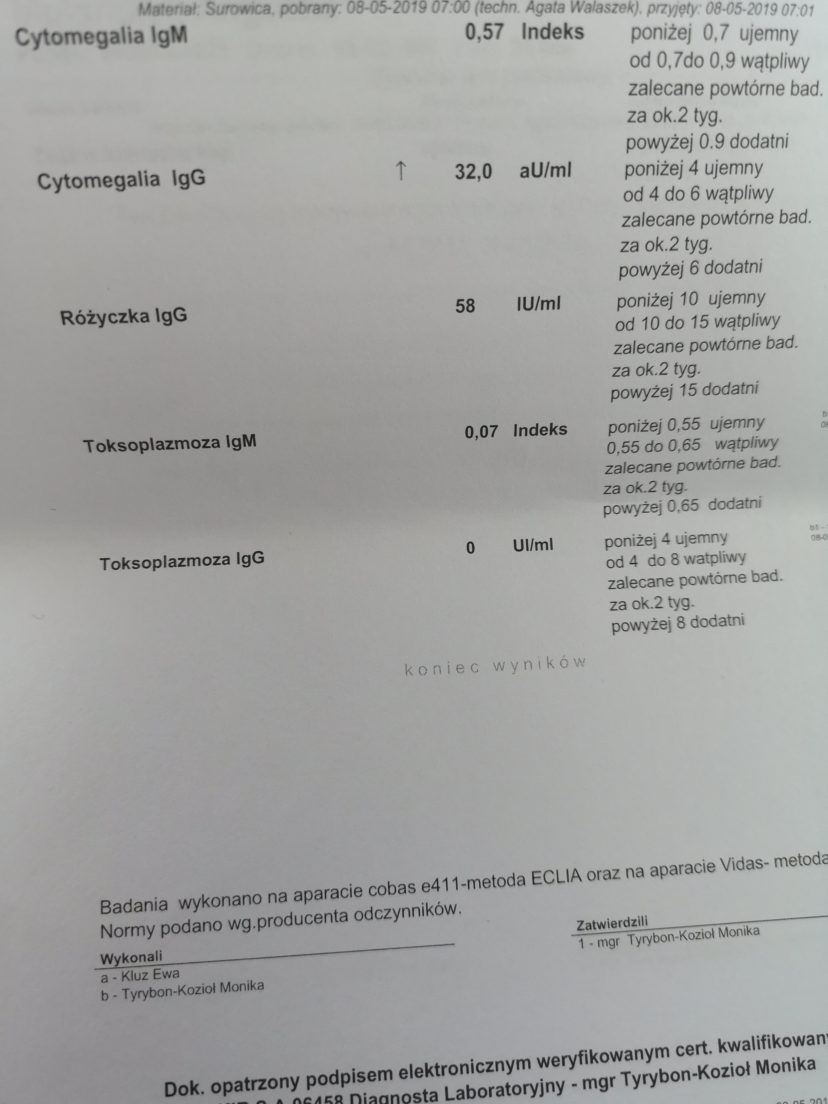 Te liczby są malutkie,tylko podane z dokładnością do 3 miejsc po przecinku- inaczej niz normy. Na pewno cytomegalia nie byla powodem poronienia.