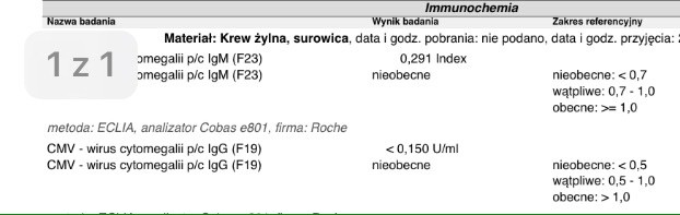 Wynika, że nigdy nie chorowałaś na cytomegalię i nie masz przeciwciał.Bardzo dziękuję za odpowiedź. Te liczby chyba nie wskazują na to że kiedyś chorowałam na cytomegalia…?