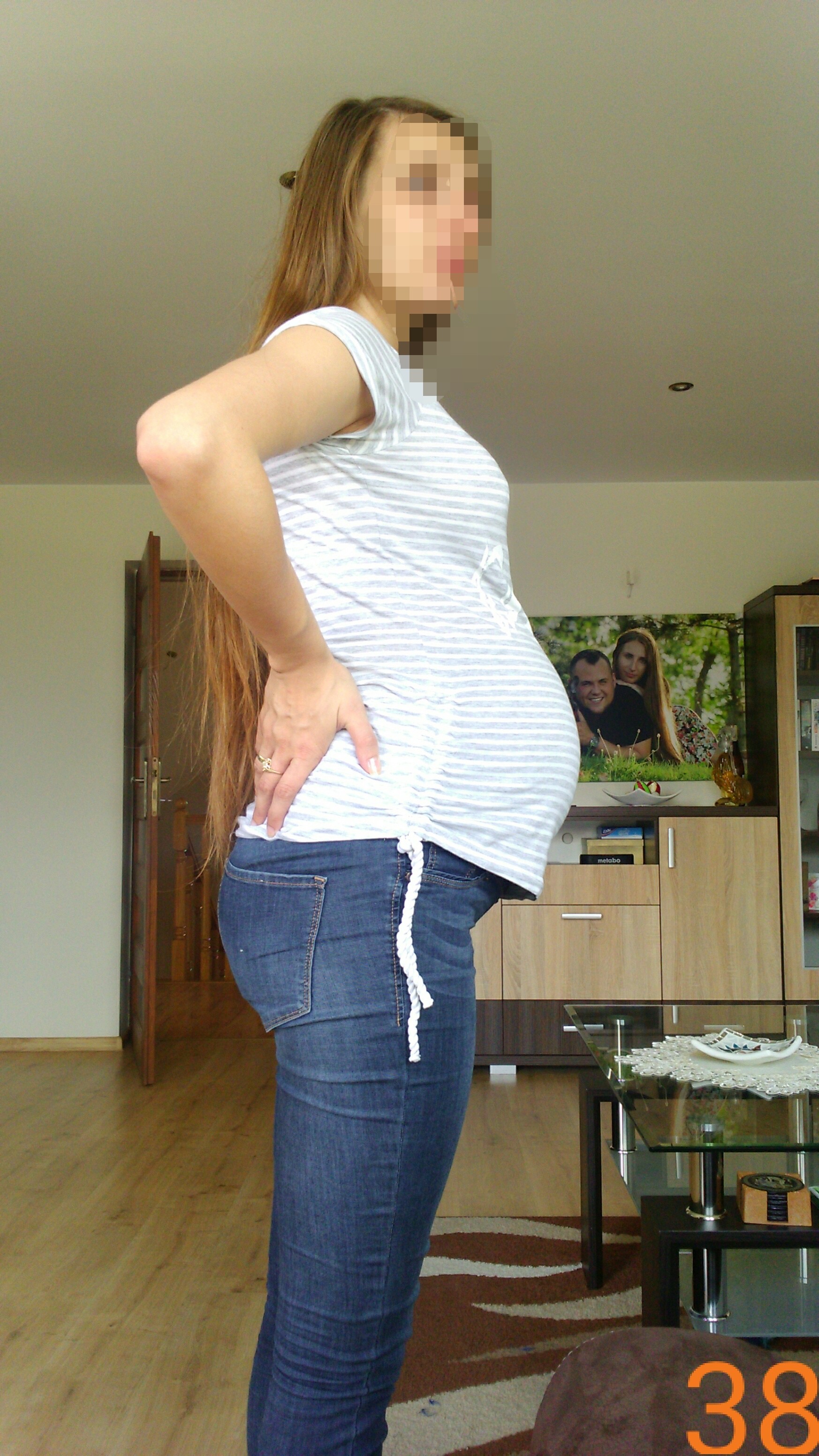 Jak na 38 tydz mi się wydaje maluszek brzuszek. Ładny i zgrabny i tylko brzuszek odstaje.To ja w 38 tc miałam trochę mniejszy brzuch i mi normalnie się nie funkcjonowało bo np. ciężko było mi ogolic miejsca intymne albo, mąż musiał mi czasem pomóc buty założyć