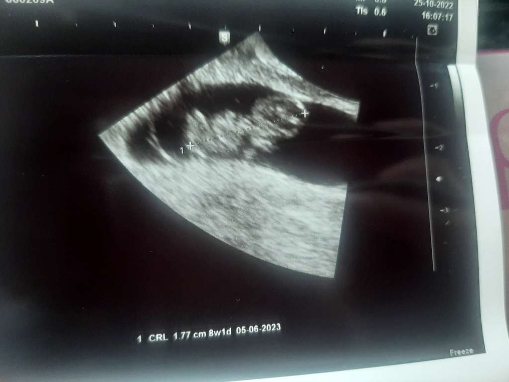 Wg OM 7+3, według dzisiejszego USG ciąża młodsza 6+3, termin porodu 17.06.