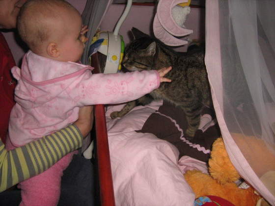 A tak Gaja wygania pusię ze swojego łóżeczka![]()