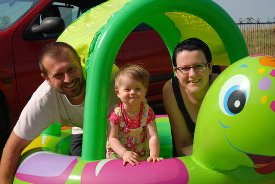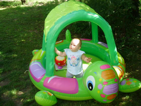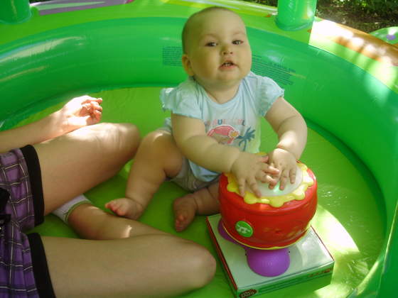 Urodzinki super się udały:-), było nas 14 osób z Majusią, pogoda dopisała, imprezka była na dworze przy grillu, dzisiejszy dzień też był bardzo udany, Majusia dostała od dziadków basen, więc oczywiście trzeba było przetestować, pluskania końca nie było widać:-)
