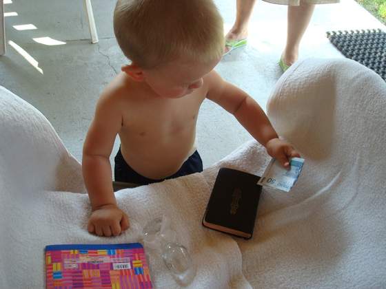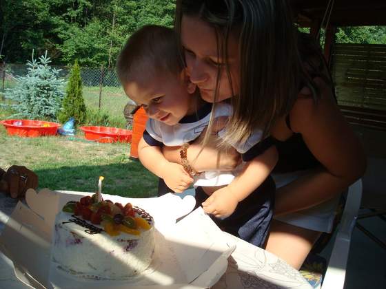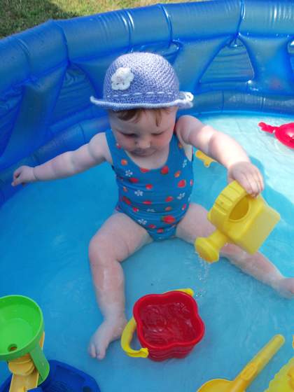 Jaka mała zabka w basenie, Łukasz uwielbia konewki)