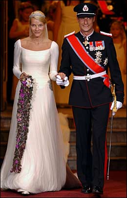 Bardzo byłam oczarowana suknią młodej Mette-Marit (norweskiej księżnej)jak i mundur księcia mi sie bardzo podobał.