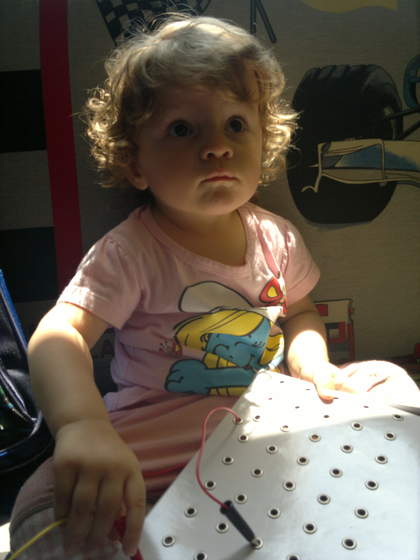 . Młodej Damie bardzo się podobała trampolina - całkiem sporo, z siatką - taki duży kojec był, jak stawiała kroki to się tak fajnie uginała.