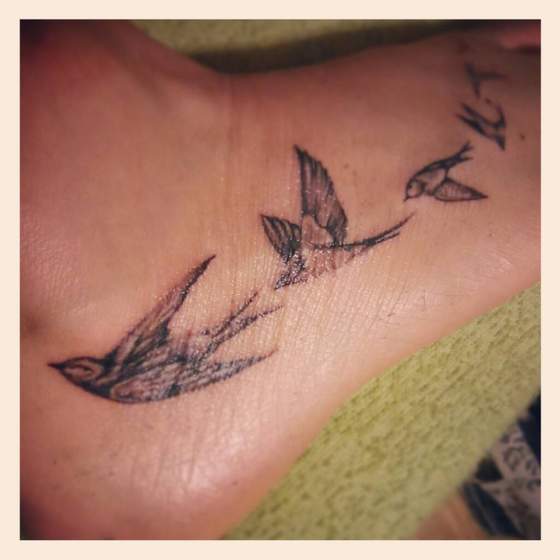 asinka w tej kolejności robione :) każdy jeden kocham :) pierwszy podwojna nieskończoność (tak długo będę ludziom zatruwa życie ;) ) jaskółki na stopie gdzieś coś podobnego widziałam ibprzerobilam i uwielbiam :) no o za uchem indiańskie piórko - Wild Spirit :)