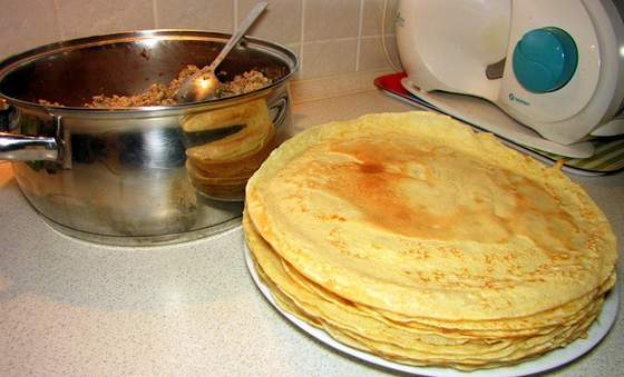 Nie mogłam zostawić mięska mielonego na jutro, więc ledwo stojąc na nogach usmażyłam te 30 naleśników i czas je połączyć z farszem. Jeśli o ilości chodzi to też walnięta jestem. Zawsze wszystkiego kupuję, robię za dużo, bo mi się wydaje, że dziś się napracuję, to z głowy będzie obiad na 2, 3 dni.