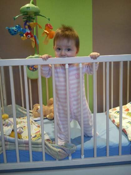 Młody popitala (raczkowanie w pełni) po całym parterze jak szalony, nic nie idzie przy nim zrobić bo zaraz przychodzi i sie czepia za portki no i wstaje. Jak gotuję to się boję, że go poparzę albo coś wiec co chwila go odstawiam na drugi koniec kuchni i biegiem pomieszać w garach. Paranoja jakaś, ale inaczej się nie da.
