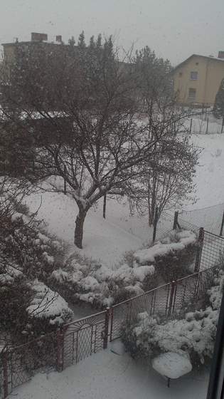Fioletowa - to zdjecie sprzed dosłownie 3 minut, akurat szaleje śnieżyca - na zdjęciu tego nie widać... jakoś ten 11 kwietnia wydaje się mało realny na początek wiosny: