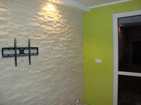 Poniżej zdjęcie kawałka salony, chodziło głównie o ścianę z kamienia dekoracyjnego, jeszcze zostały dwie ściany do zrobienia, tzn. podłączyć nowe gniazdko i pomalować a na drugiej ścianie będzie łuk zamiast drzwi
