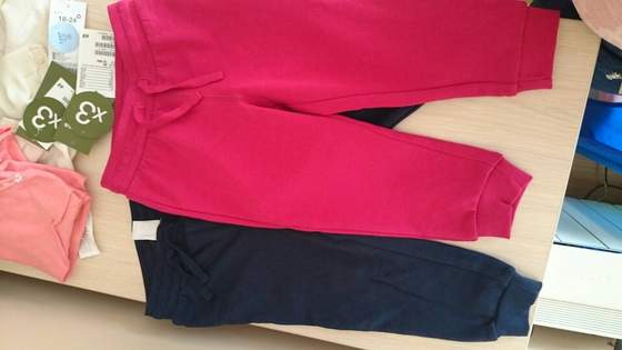 kupiliśmy Zosi 4 pary spodni dresowaych, w tym 2 cieplejsze, granatowy sweterek, body i koszule dzinsowa