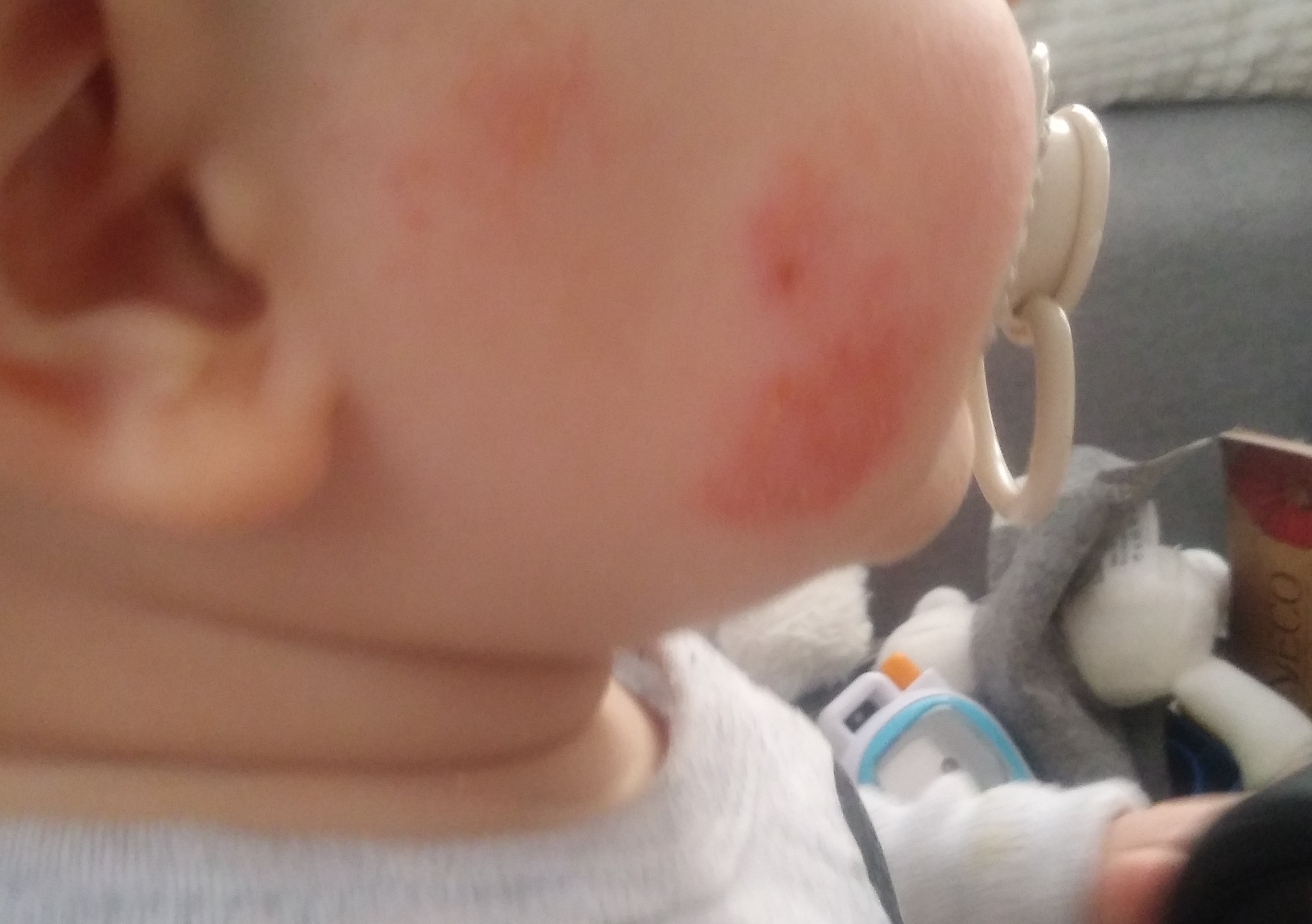 Bardzo proszę o poradę, ponieważ mnie samej skończyły się pomysły. Mój 10-miesięczny synek od pół roku ma na twarzy czerwone, suche plamy. Byliśmy u kilku pediatrów, 2 dermatologów i alergologa. A to alergia na tle kontaktowym, a to łzs...Kilka przypisanych maści i balsamów...nic nie pomaga. Zaznaczam, że nie jest to skaza białkowa ani AZS (sprawdzone przez ostatni czas, mleko zmienione na Nutramigen). Nie jest to również reakcja na składnik pożywienia.Czy któraś z mam miała podobnie ? Naprawdę nie wiem już co robić, a plamy są coraz gorsze. Załaczam zdjęcie.
