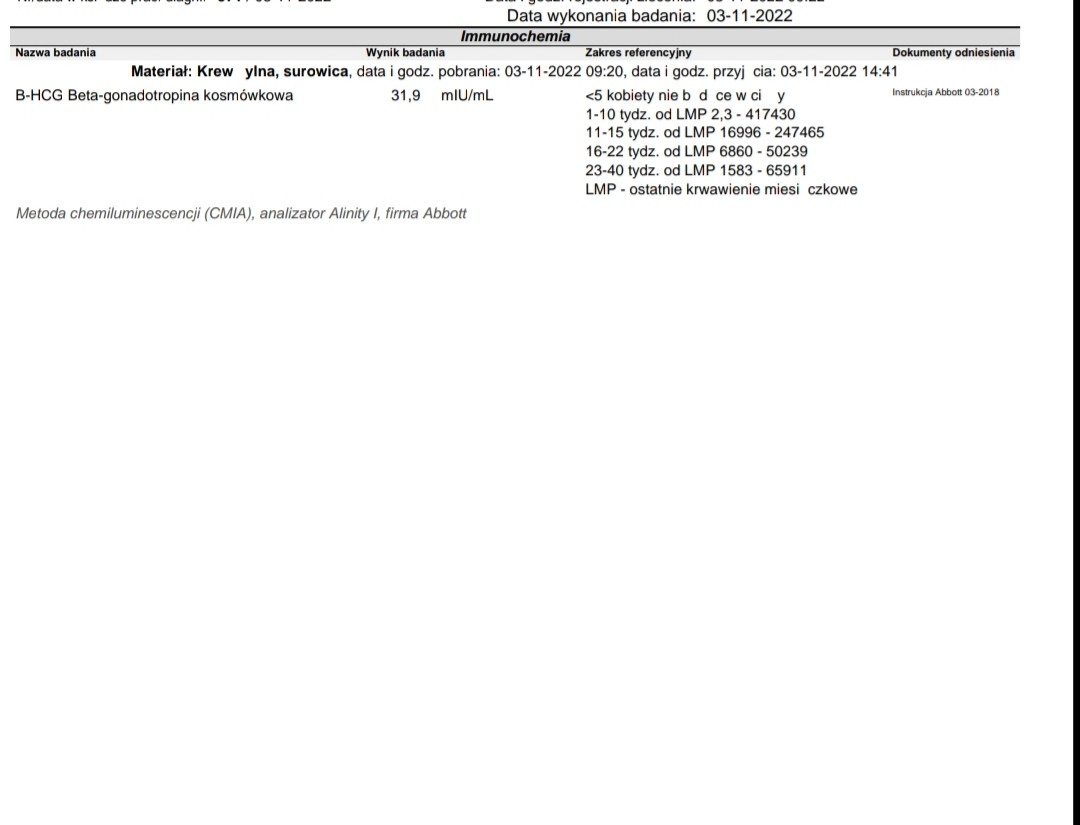Widziałam zakres ale robiłam betę pierwszy raz i chciałam chyba po prostu od kogoś to usłyszeć i się upewnić czy się nie mylęoznacza, że jesteś w ciąży, obok jest zakres referencyjny
