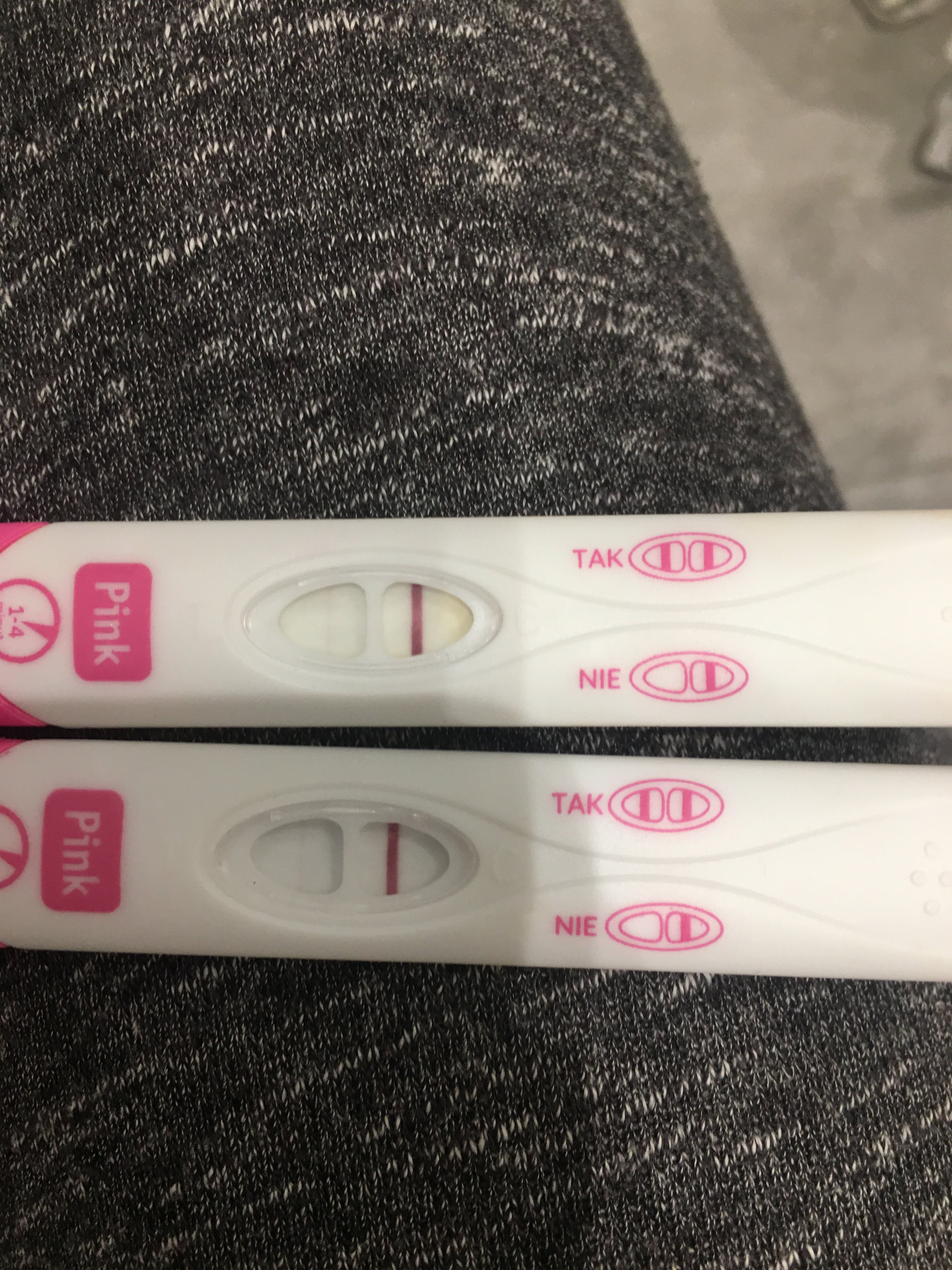 robiłam dwa testy pink i wyszły takie jak na zdjęciach czyli bardzo delikatna druga kreska a test pepino nie pokazał nic, który test jest prawdziwszy?