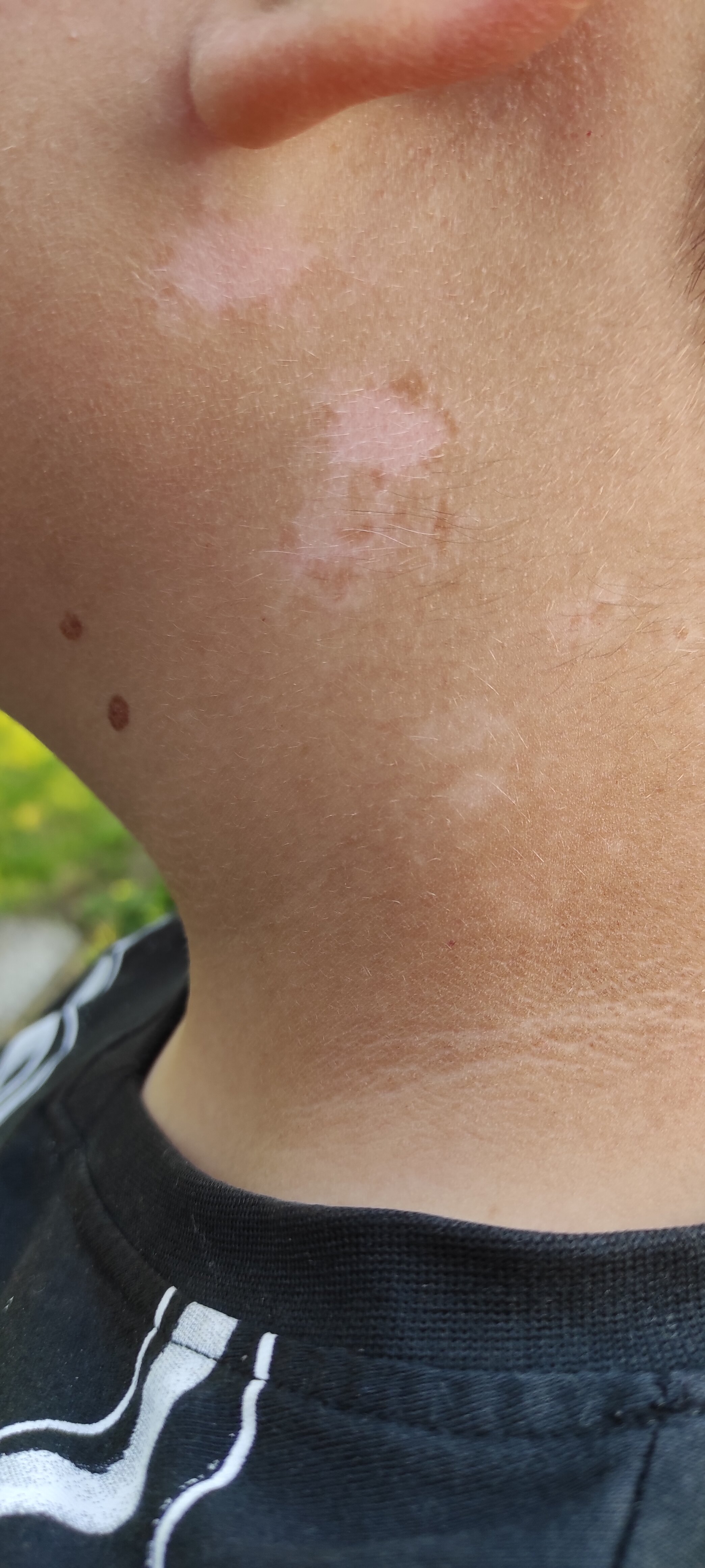 mój syn obecnie ma 9 lat w wakacje pojawiły mu się plamki koło ucha (nie dające mu żadnych objawów ) ma stwierdzone AZS ale to akurat nie to byłam z nim lipcu u dermatologa kazała smarować dermotopikiem i kremem z filtrem podczas dużego słońca bo po dłuższym przebywaniu na słońcu robiło się różowe a później białe i mieliśmy zgłosić się na wizytę we wrześniu. Byliśmy kilka dni temu na kontroli ma tych plamek trochę więcej niż na załączonym zdjęciu bo doszly nowe w okolicy karku pani pytała o bielactwo w rodzinie ale nikt u nas nie ma i ona na tą chwilę jednoznacznie mi nie powiedziała że to bielactwo ale jak czytam że w wielu 9 lat wychodzi bielactwo nabyte to już raczej nie mam wątpliwościNo właśnie czytałam że w wieku ok 9 lat nabyte wychodzi a wrodzone od razu no i nie wiem. Jedna plamka nic więcej. Zglosze się do lekarza przy najbliższej infekcji czy przy bilansie na 2 latka i zobaczę co powie. Chociaż najchętniej bym małego wzięła prywatnie do dermatologa było by szybciej. A diagnozę lekarz postawi na podstawie plamki czy trzeba robić badania krwi?