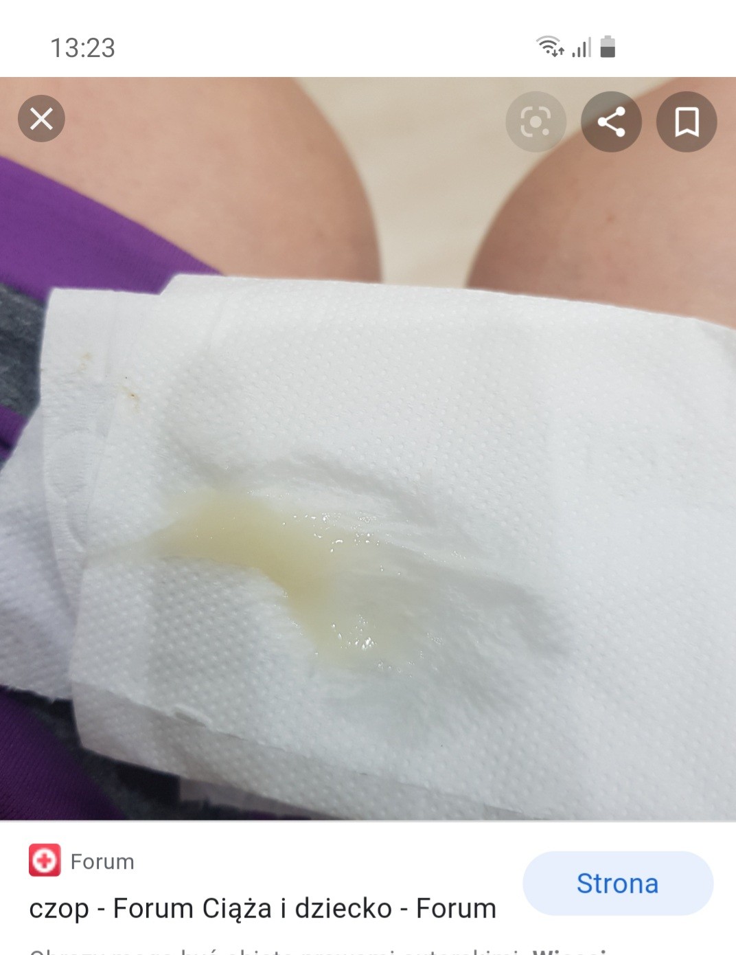 A ja jestem przerażona bo to moja pierwsza ciąża i nie wiem czy to była po prostu duża ilość śluzu po nocy (lekarz mi mówił, że w ciepłe dni śluzu może być więcej, dlatego to zbagatelizowałam) czy czop. Dodaje zdjęcie z internetu, tak wyglądało to "coś", Było tego troche wiecej.