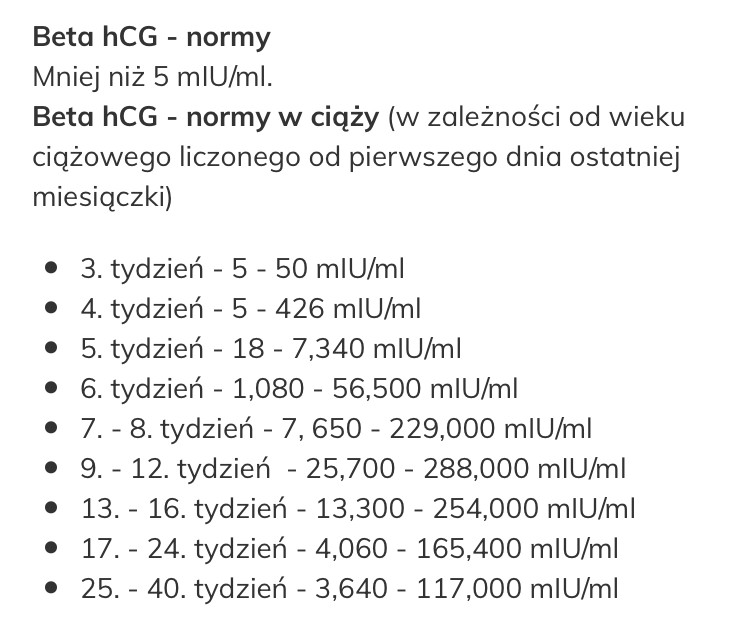 To są jakieś inne normy? Poniżej 100?Nie ma sensu wklejanie norm bo wynik mówi sam za siebie. Ciąży nie ma. Jak okres nie przyjdzie to powtórz betę a jak negatywna to do lekarza.