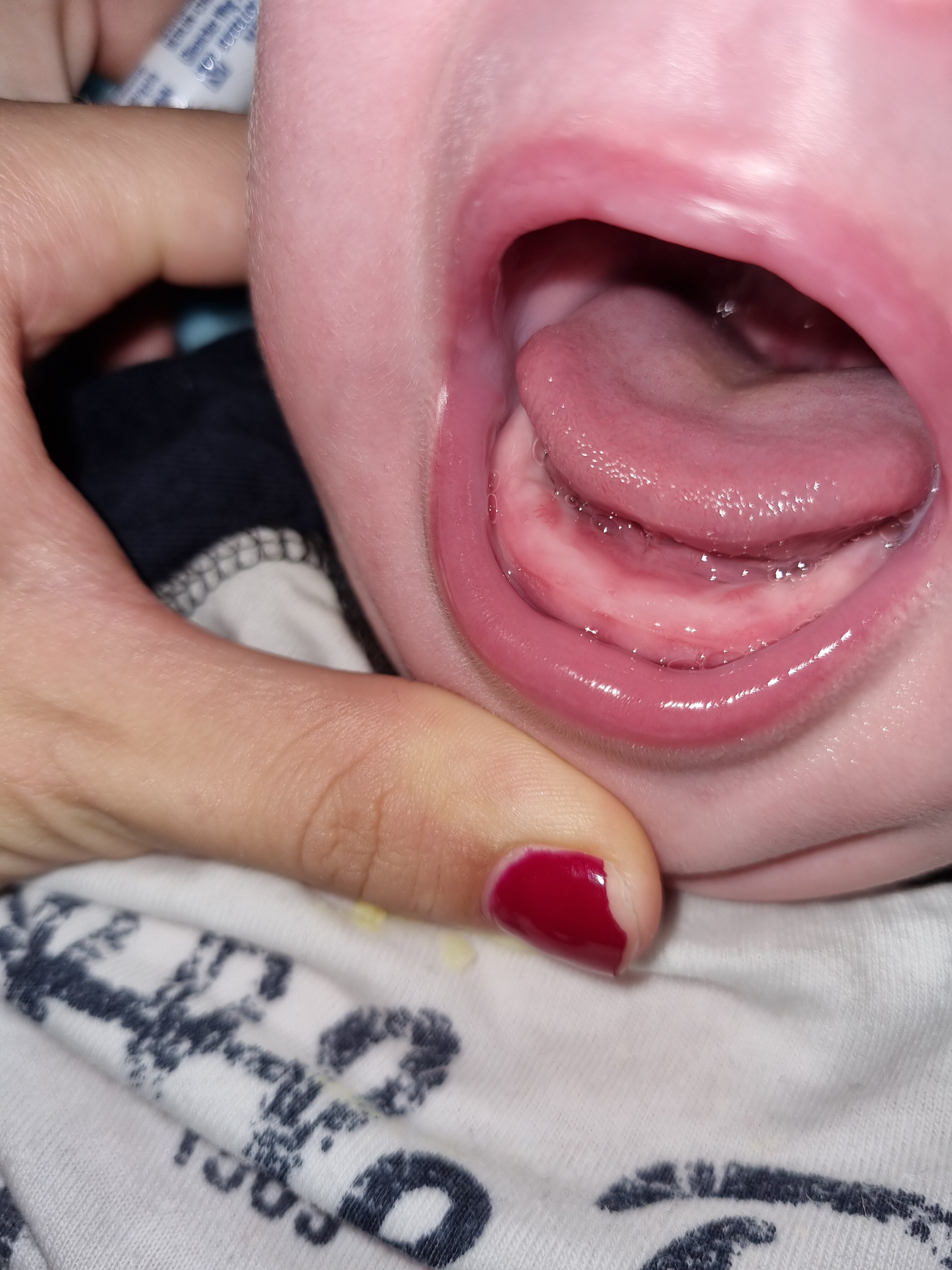Czyli jeszcze się pomęczymyMoim zdaniem do wyjścia ząbków jeszcze trochę czasu upłynie, co nie oznacza, że sam proces już się nie zaczął i nie daje się we znaki dzieckuJak blisko do wyjścia ząbków - to widać wyraźne linie od ząbków.