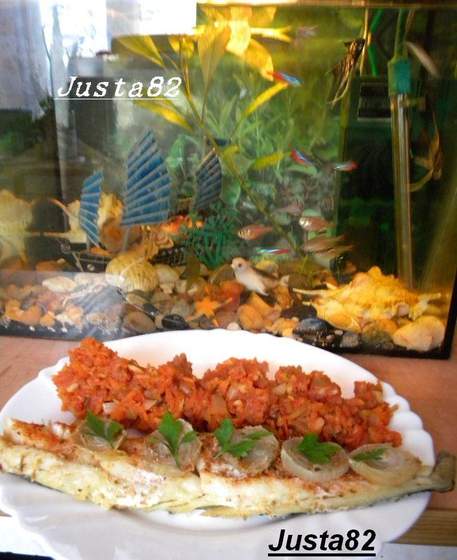 Rybę przełożyć warzywkami.