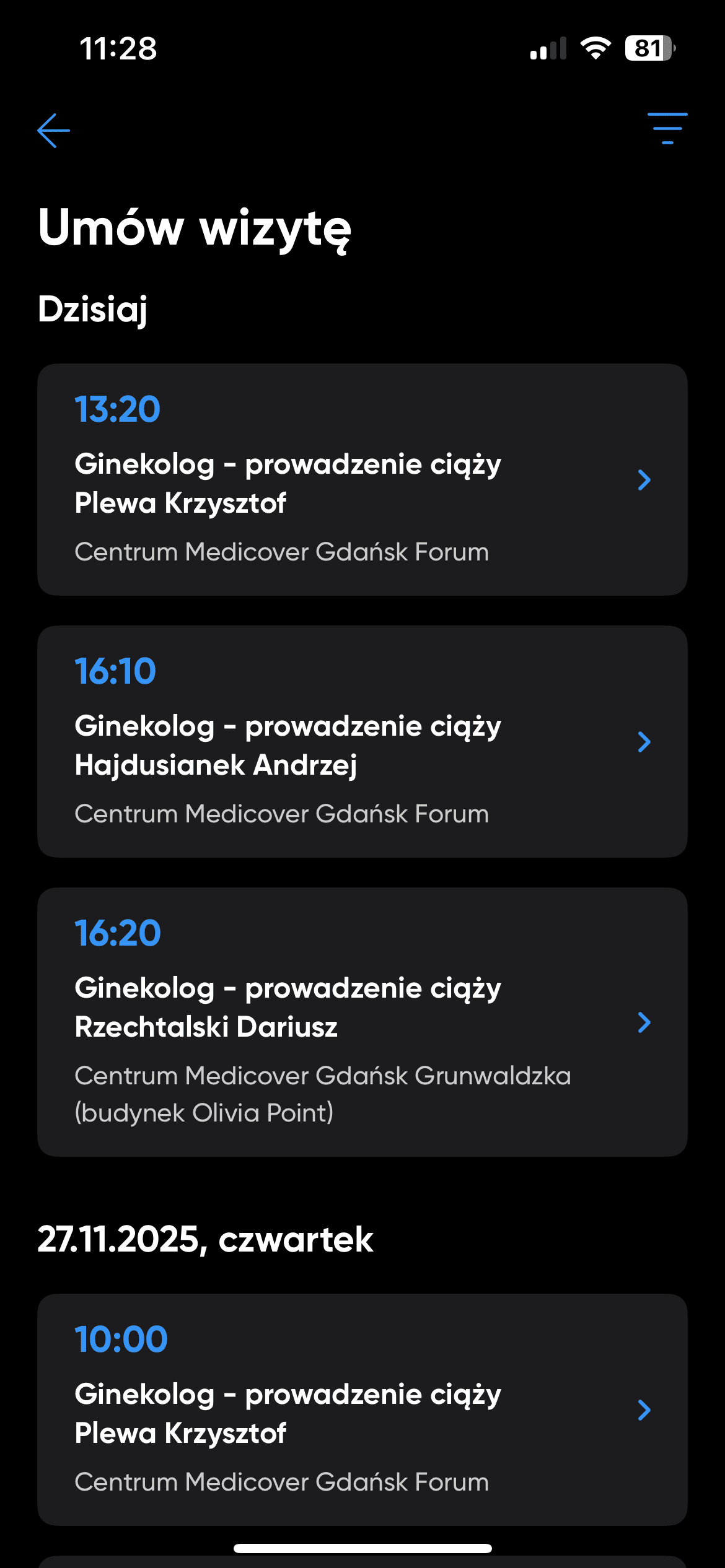 U mnie też. Jak wizyta np 12:00 to byłam zawsze szybciej i położna przed wizyta wołała na ciśnienie i ważenie i wpisywanie do karty ciąży wynikówJa w Luxmedzie miałam na 1 wizycie i jeszcze przed położna ważyła i mierzyła ciśnienie