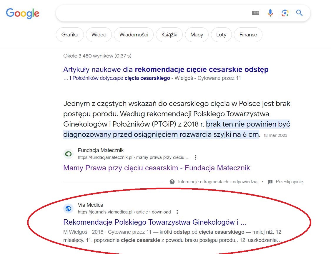 W każdym razie rekomendacje to nie jest jakaś tajemna wiedza, ale że to PDF, który się pobiera to mogę jedynie powiedzieć, że po prostu wpisujemy sobie w google "rekomendacje cięcie cesarskie odstęp" i drugi link: