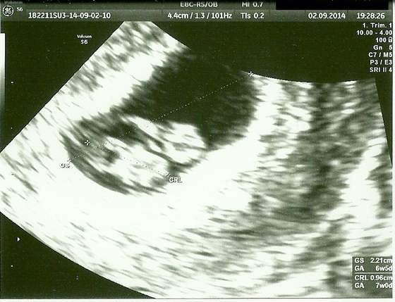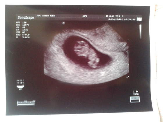 Nie jestem juz fasolka, ale małym człowieczkiem, mam mini nosek, nozki i ramionka. Mierze 22mm. Serducho bije jak dzwon! Byłem bardzo ruchliwy i pokazałem sie ze wszystkich stron, to białe nade mną to pępowina ;D