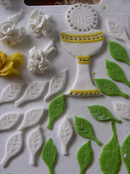 Paula jesli chodzi o te ozdoby to jest swietna zabawa,my robilismy z marcepanu i masy cukrowej tutaj takie masy sa tanie wiec mozna szalec,bo w polsce pamietam jak chcialam w tamtym roku kupic to oszaleli z takimi cenami,trudne do robienia nie sa mozna wszystko zrobic to jest jak plastelina a jak ktos ma choc troszke talentu to zdziala cuda,ja bede pokrywac tort taka masa cukrowa,a dla dzieci jakie sa piekne torty,nie mam juz nawet linkow do stron a wszystko sobie zapisalam na tym nieszczesnym kompie musze szukac na nowo,Paula ale jak zerkniesz na necie to ci pokaze cuda z tych mas. Ostatnie buty ktore kupilam do komuni sa materialowe,a ja obszylam je bialymi koralikami,ladnie wygladaja ale noga dalej szczupla
