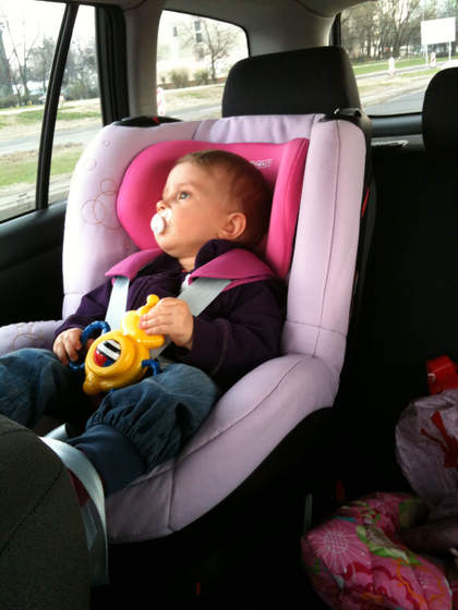 my przejechalismy w foteliku sporo km ostatnio z czego Jas wiekszosc spal, ma ciagle rozlozone na pozycje "lezaca"