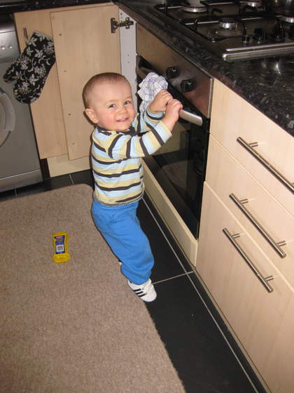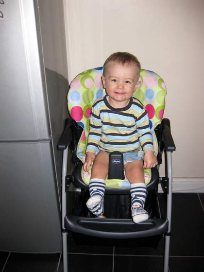 wesoły chłopczykDokładnie o tym samym pomyślałammysia a Gracjanek nie wyskoczy z tego krzesełka?tak grzecznie siedzi