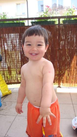 Jaś też tak śpi ale w łóżeczku.