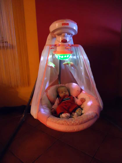 bardzo dobry pomysł aby nie przyzwyczajać do kołysania w ramionach, zbyt często oczywiściemy mamy ten: