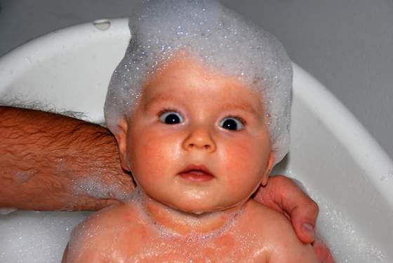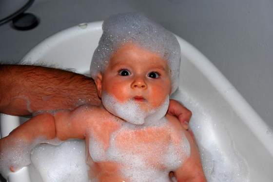 A tak tatuś kąpie Kajtka. Zastałam ich tam jak przyszłam przynieść im ręcznik.