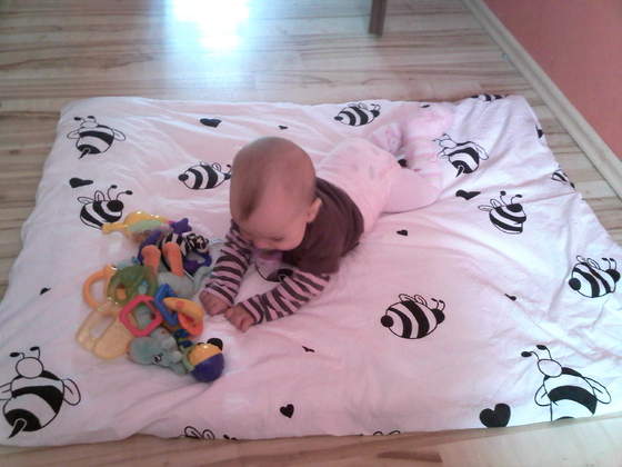 Nie wystarcza.Zawsze zladuje poza nia na podlodze ale akurat wtedy byla senna a chcialam ja jeszcze troche zmeczyc potrawlo to moze z 5 minut i przewrocila sie na plecy i poszla spac w najlepsze. Do zabawy jak jest wyspana rozkładam jej nasza duza koldre z lozka albo duzy koc wtedy ma dosc duzy poligon do zabawyDobrawa dawno Cię u nas nie byłomasz sliczną córeczkę, te oczka